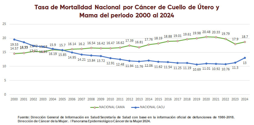 En México, existe un programa enfocado en el control de esta enfermedad, aunque desde mediados del siglo pasado se realizaron acciones para el control del cáncer del cuello uterino, fue en la década de los 90 que se instauraron esfuerzos importantes para la detección precoz y desde hace más de una década para el cáncer de mama. Actualmente sabemos que ambos casos, constituyen las dos primeras causas de muerte por neoplasias malignas en mujeres mayores de 25 años, en nuestro país.