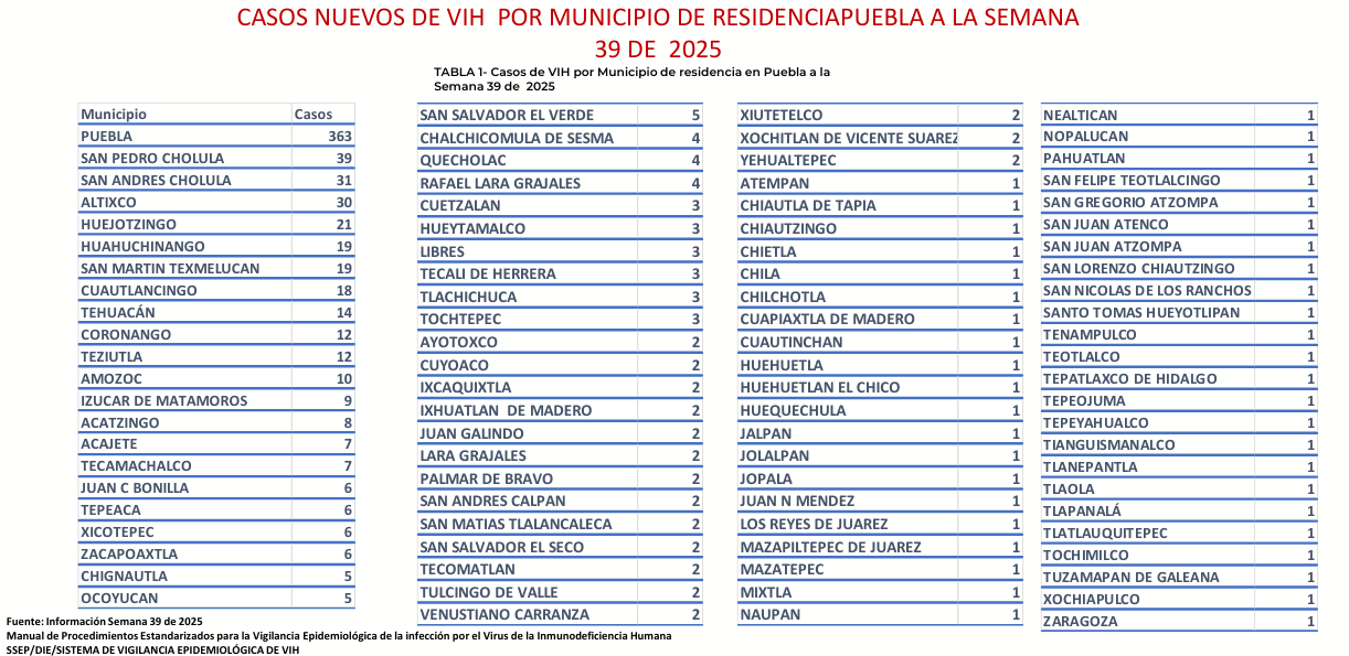 Panorama Epidemiológico de VIH del Estado de Puebla