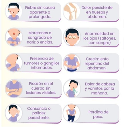Signos y síntomas de casos con sospecha de cáncer en menores de 18 años.